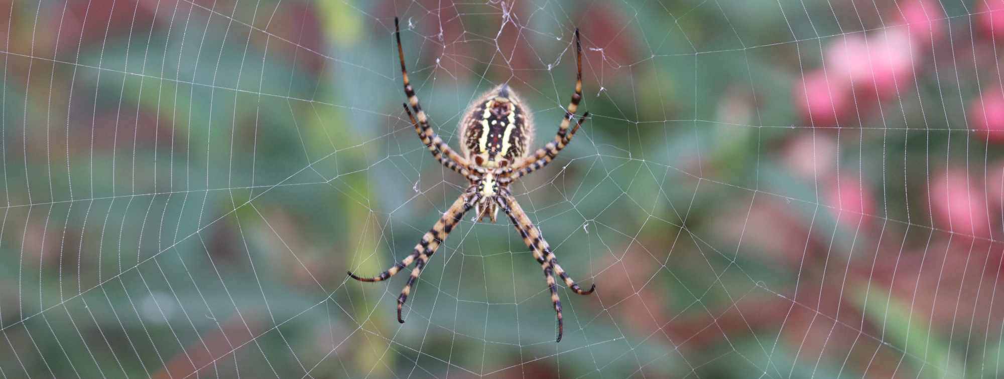 Amy spotted this big orb weaver hanging out in the backyard. She really dislikes the close up of the legs, but I liked how the hairs helped it with the web.